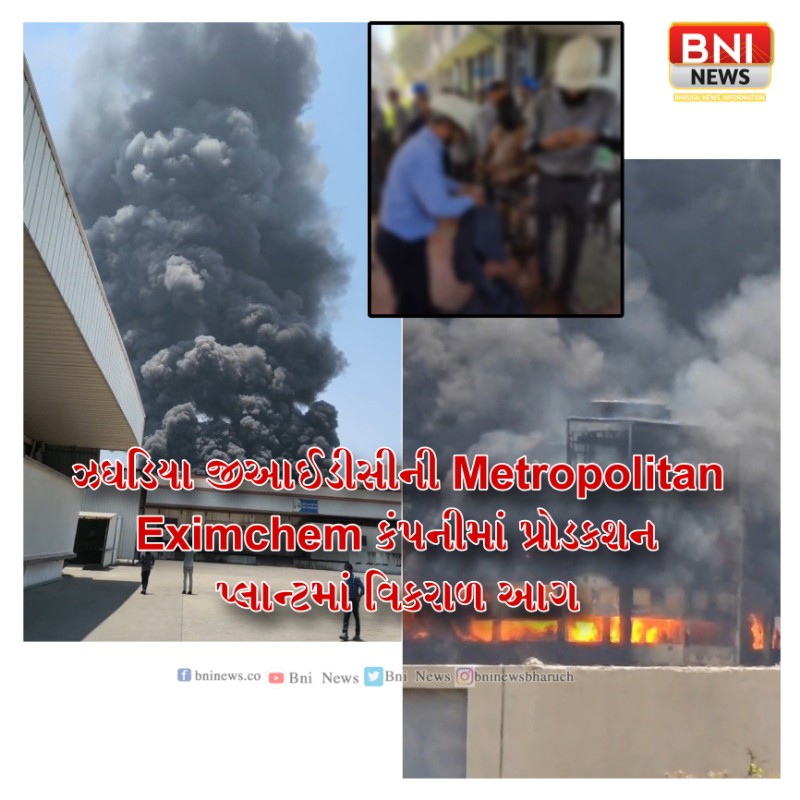 ઝઘડિયા જીઆઈડીસીની Metropolitan Eximchem કંપનીમાં પ્રોડકશન પ્લાન્ટમાં વિકરાળ આગ