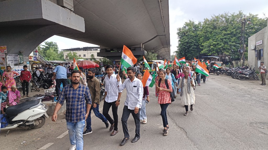 હાથમાં તિરંગા અને વંદે માતરમ્,ભારત માતા કી જય ના ઘોષ સાથે ભરૂચ ભાજપ દ્વારા તિરંગા યાત્રા યોજાતા દેશભક્તિનો માહોલ છવાયો હતો.