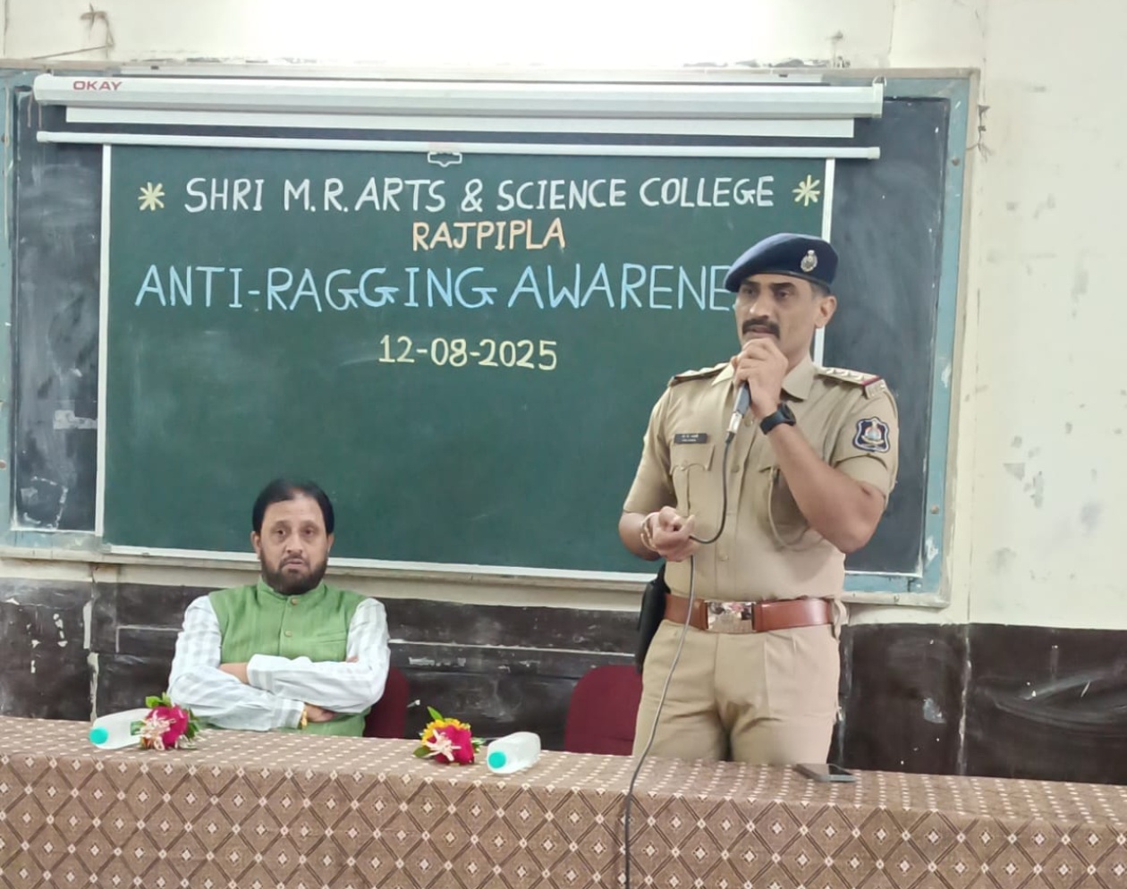 રાજપીપલા સ્થિત એમ.આર. આર્ટ્સ એન્ડ સાયન્સ કોલેજમાં ‘એન્ટિ-રૅગિંગ’ વિષય પર એક વિસ્તૃત જાગૃતિ વ્યાખ્યાનનું સફળતાપૂર્વક આયોજન તા. ૧૨મી ઓગસ્ટ ૨૦૨૫ના રોજ કરવામાં આવ્યું હતું. આ કાર્યક્રમનો મુખ્ય હેતુ વિદ્યાર્થીઓને રૅગિંગના ગેરકાયદેસર કૃત્યો અને તેના ગંભીર કાયદાકીય પરિણામો વિશે માહિતગાર કરવાનો હતો.જેથી કોલેજ કેમ્પસમાં ભયમુક્ત અને સુરક્ષિત શૈક્ષણિક વાતાવરણ જાળવી શકાય.