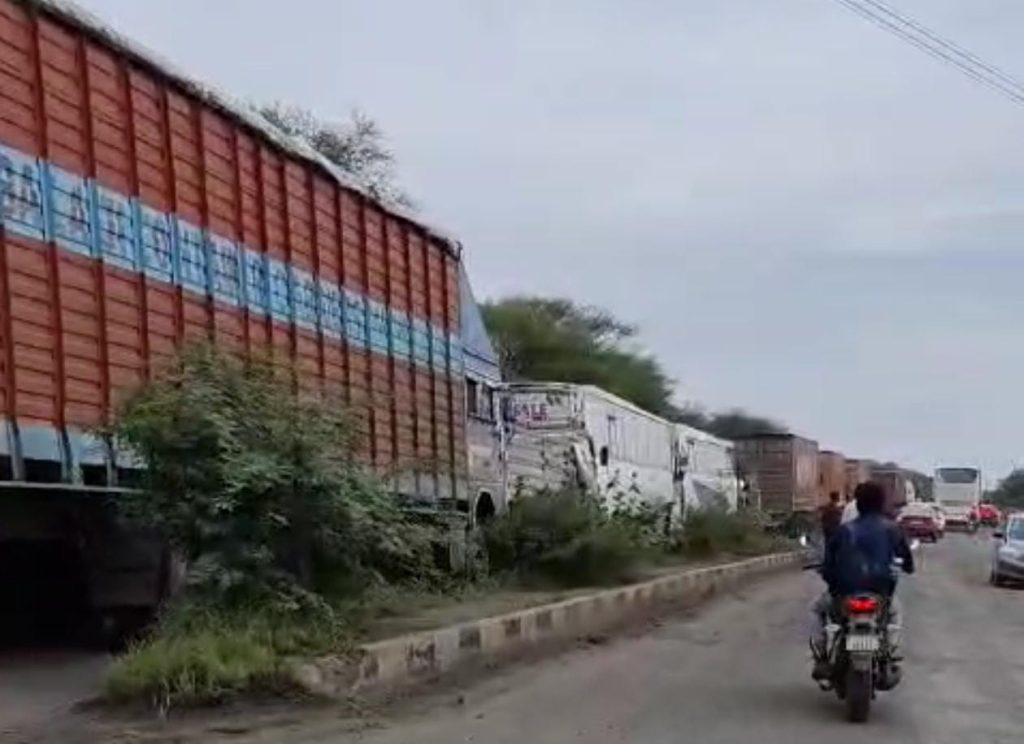 – ટ્રાફિકજામમાં અનેક વાહનો ફસાયા : મુસાફરોને અધ વચ્ચે ઉતારી દેવાતા હાલાકી