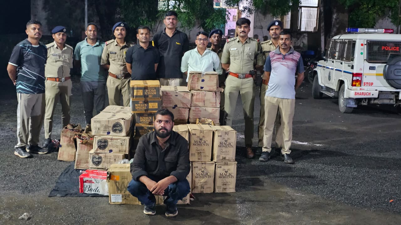 વાલિયા પોલીસે કદવાલી ગામના પુલ ઉપરથી ફોર વ્હિલર ગાડીમાં લઈ જવાતા દારૂ સાથે એકને ઝડપી લીધો