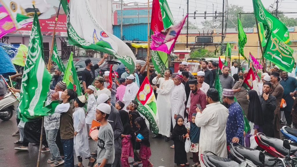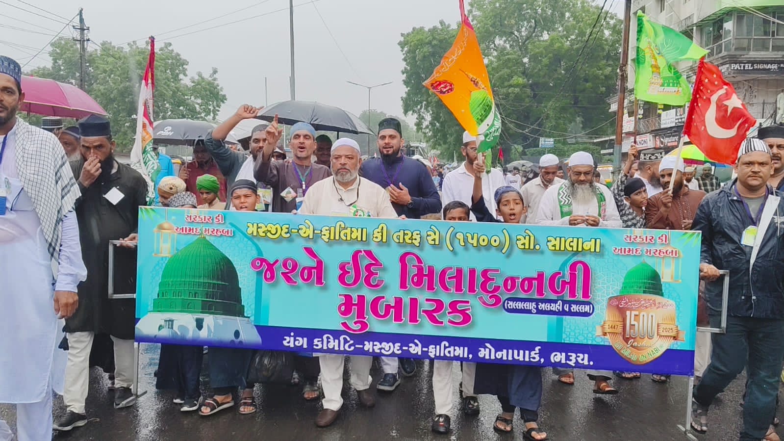 ભરૂચમાં વરસતા વરસાદમાં પણ ઈદે મિલાદનું ઐતિહાસિક જુલુસ નીકળ્યું