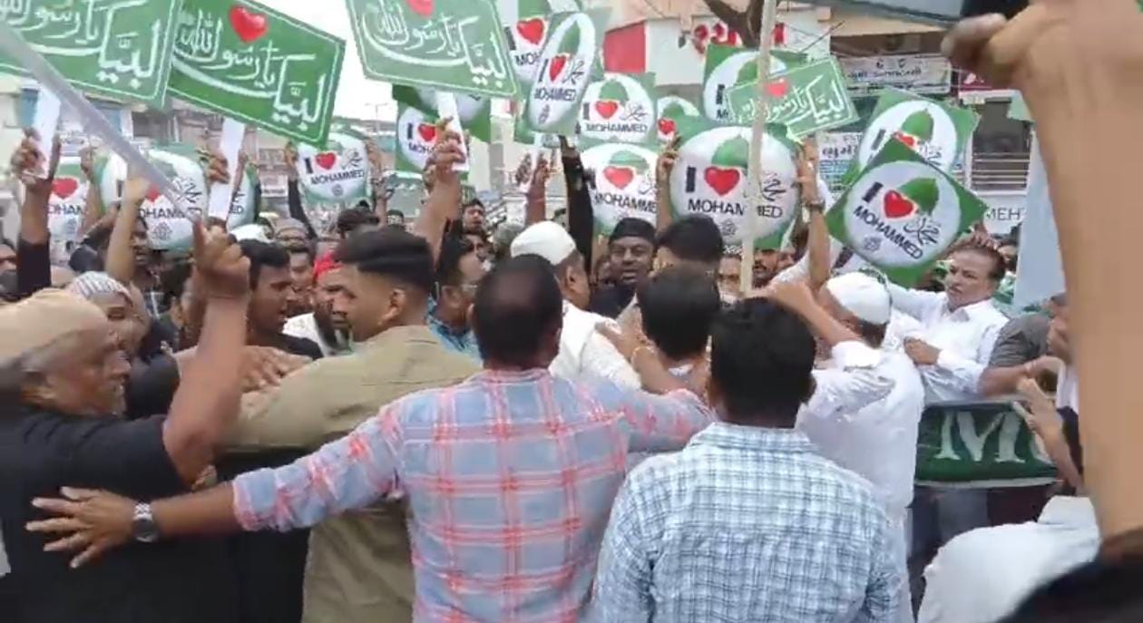 કાનપુરમાં ઈદ-એ-મિલાદના પર્વ પર આઈ લવ મોહંમદ (સ.અ.વ.) ના બેનરો લગાવવા મામલે પોલીસ દ્વારા થયેલી કાર્યવાહીના વિરોધમાં દેશભરમાં ફેલાયેલા રોષનો પડઘો આજે અંકલેશ્વરમાં પણ જોવા મળ્યો હતો.મુસ્લિમ સમાજના લોકોએ મોટી સંખ્યામાં એકઠા થઈને આઈ લવ મોહંમદ (સ.અ.વ.) ના બેનરો સાથે શાંતિપૂર્ણ રેલી યોજીને પોતાનો વિરોધ અને નારાજગી વ્યક્ત કરી હતી.