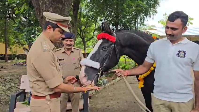 – રિવોલ્વર,બંદુકો સહીત પોલીસ વાહનો,અશ્વ તેમજ શ્વાનનું પૂજન અર્ચન કરાયું