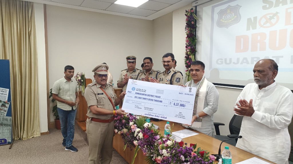 – ગૃહ રાજ્ય મંત્રી હર્ષ સંઘવીના હસ્તે સરકારની ‘રીવોર્ડ પોલીસી’ હેઠળ રાજ્યના ૭ મોટા કેસોમાં સફળતાપૂર્વક કામગીરી કરનાર પોલીસ જવાનોને ૨૯.૬૭ લાખની ઈનામની રકમ અર્પણ કરી