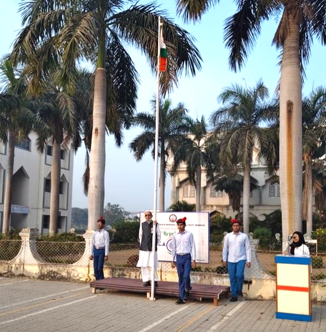 ભરૂચ સ્થિત મુન્શી વિદ્યાધામ કેમ્પસ ખાતે મુન્શી મનુબરવાલા મેમોરિયલ ચેરિટેબલ ટ્રસ્ટ દ્વારા ભારતના 77 માં ગણતંત્ર દિવસની ગૌરવસભર ઉજવણી કરવામાં આવી.
