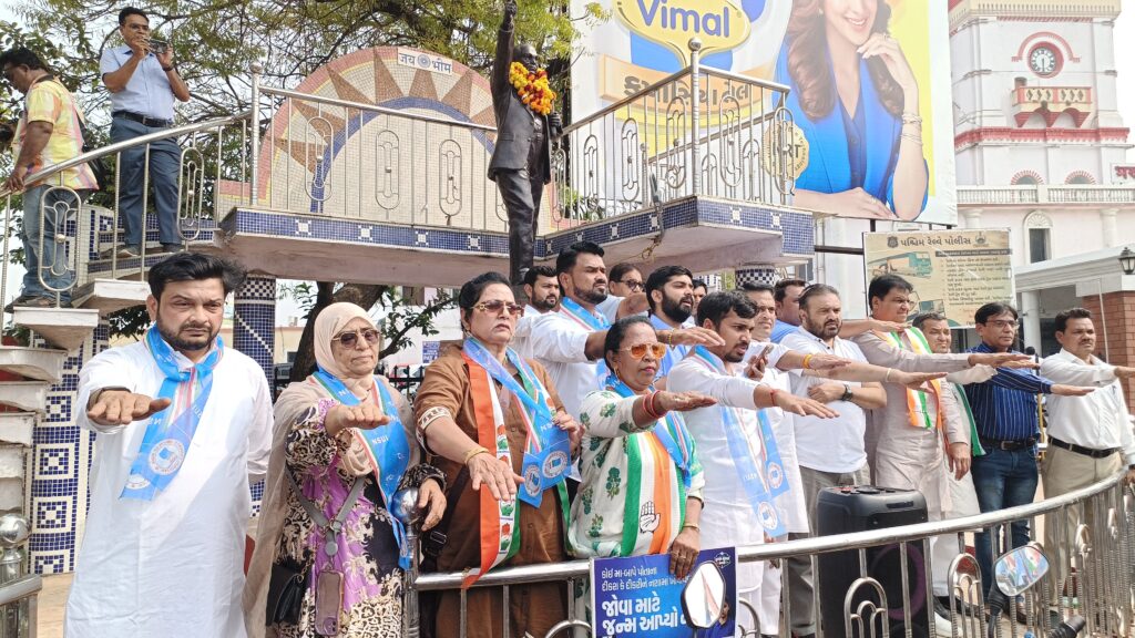 – બેનર,પ્લેકાર્ડ અને ઝંડા અને સૂત્રોચાર સાથે આગેવાનો અને કાર્યકરો જોડાયા : ડૉક્ટર બાબા સાહેબ આંબેડકરની પ્રતિમાને ફુલહાર કરી ડ્રગ્સ વિરોધી સંકલ્પ લેવડાવ્યા