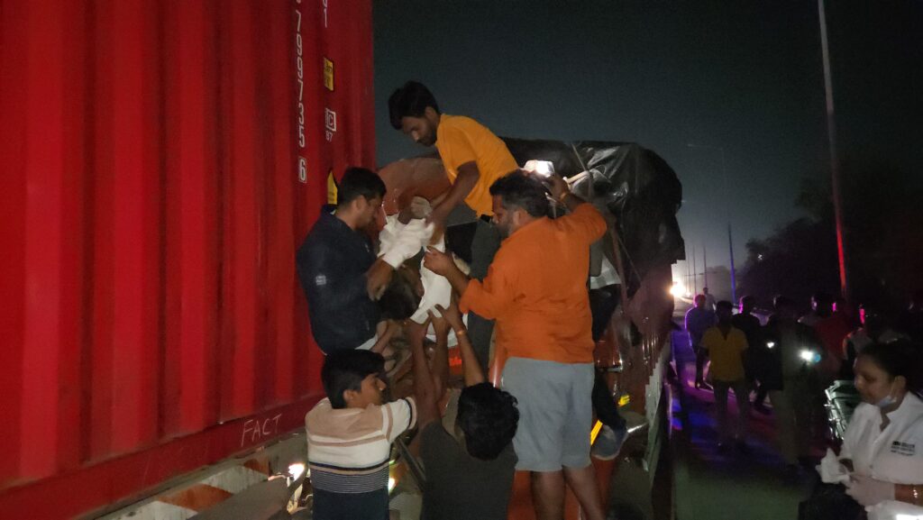 – કન્ટેનરમાં પાછળથી આઈશર ટેમ્પો ભટકાતા ચાલક કેબિનમાં ફસાતા પાલિકાના ફાયર વિભાગ દ્વારા રેસ્ક્યુ કરાયું : ચાલકને પગમાં ઈજા પહોંચતા સારવાર અર્થે ખાસેડાયો