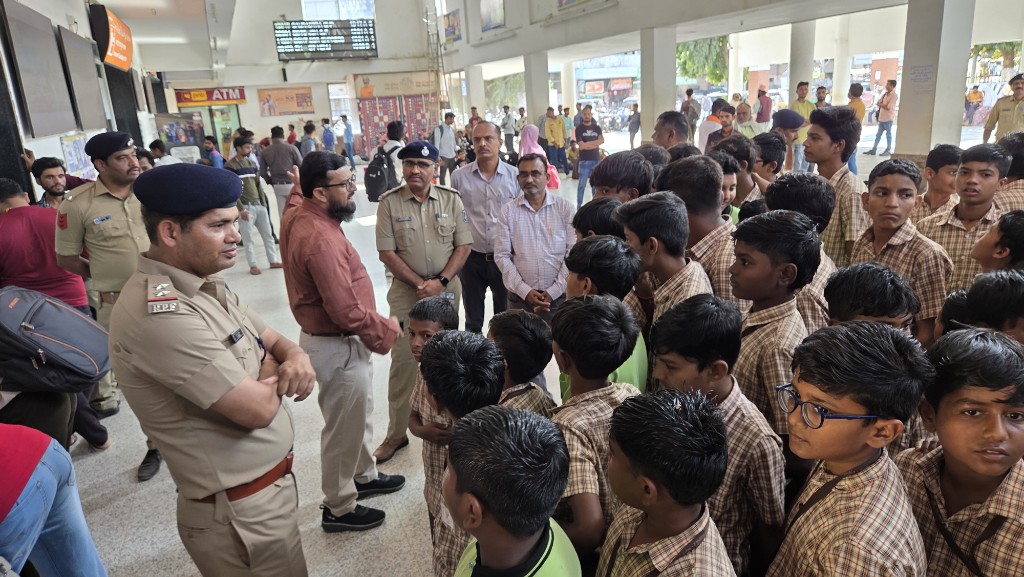 ભરૂચ શહેરની ભારતી વિદ્યાલયના ધોરણ 8 અને 9ના કુલ 80 વિદ્યાર્થીઓએ શૈક્ષણિક પ્રવાસના ભાગરૂપે ભરૂચ રેલ્વે સ્ટેશન ખાતે આવેલી રેલ્વે પોલીસ અને આરપીએફ પોલીસ સ્ટેશનની મુલાકાત લીધી હતી.મુલાકાત દરમ્યાન વિદ્યાર્થીઓને રેલ્વે પોલીસની દૈનિક કામગીરી, સ્ટેશન પરની સુરક્ષા વ્યવસ્થા,શંકાસ્પદ પ્રવૃત્તિઓ સામે લેવામાં આવતા પગલાં, વિવિધ હથિયારો અંગેની માહિતી તેમજ લોકઅપ વ્યવસ્થા સહિત ગુડ ટચ અને બેડ ટચ વિશે વિસ્તૃત જાણકારી આપવામાં આવી હતી.