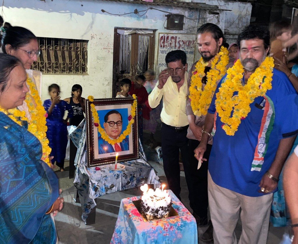 આંબેડકરની જન્મજયંતીની ઠેર ઠેર ઉજવણી : વોર્ડ નં.૮ ની સરસ્વતીની ચાલ ખાતે કોંગ્રેસના ઉમેદવારોનું સ્વાગત
